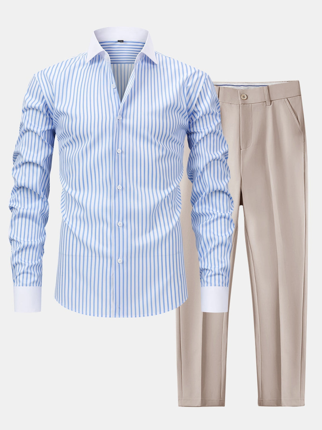 Long Sleeve Striped Shirt with Buttons & Slim Fit Tapered Pants