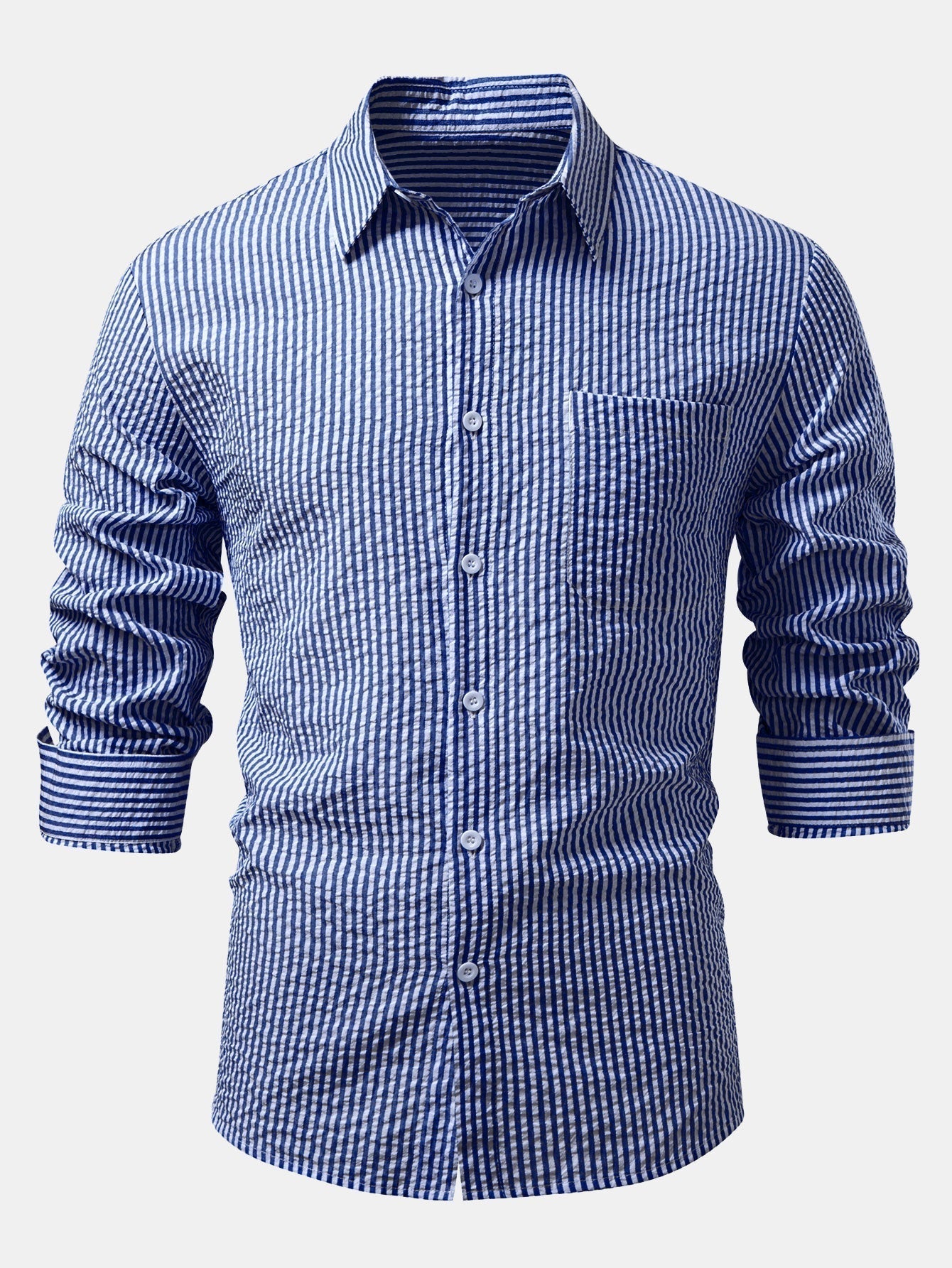 Button-Up Striped Seersucker Shirt – Caroline Boutique