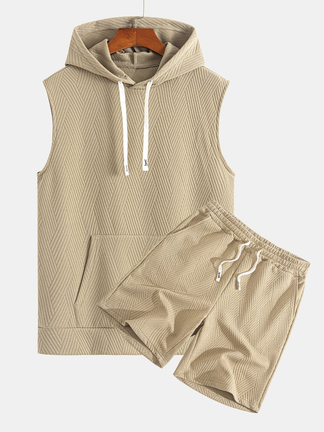 Sleeveless Hooded Sweatshirt in Striped Jacquard T-Shirt & Shorts